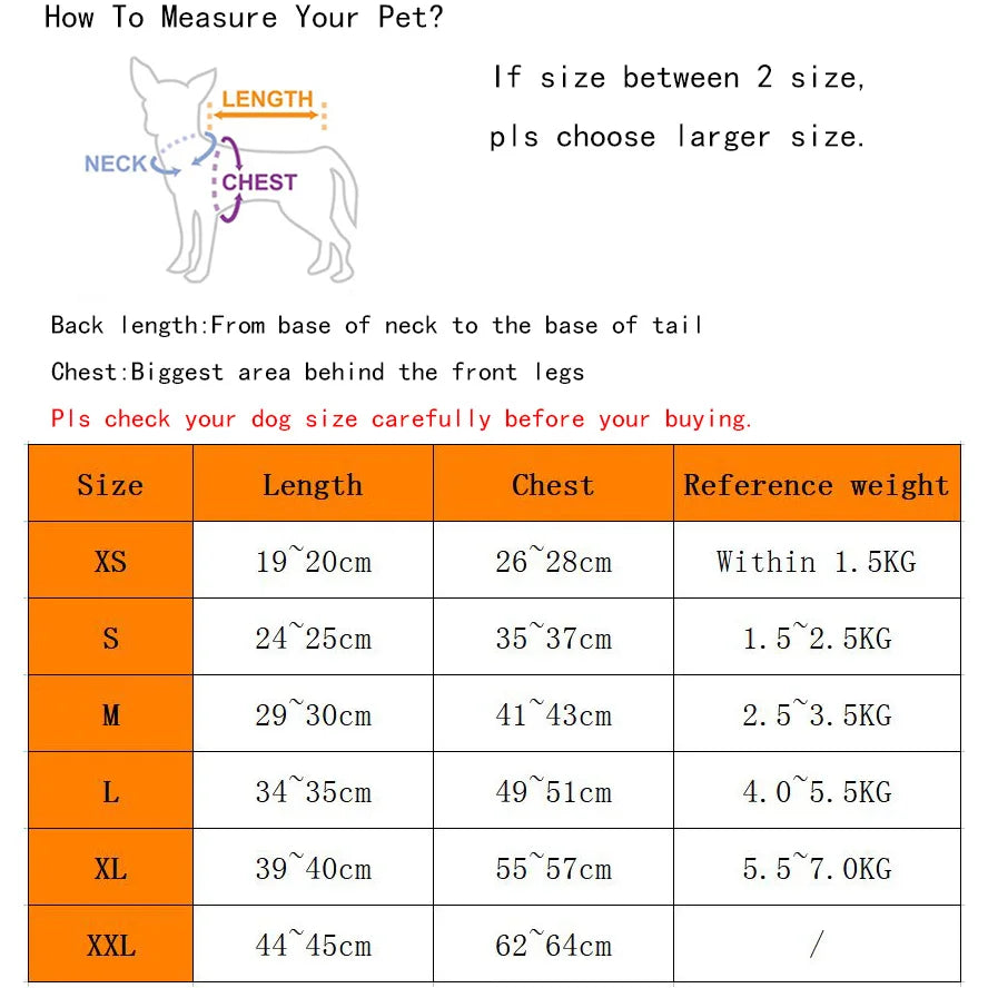 Note:Plssizing your dog before buyingwill help get you the right products!Pls kindly read the measurements,size XS/S/M/L/XL May not be the same for different clothes